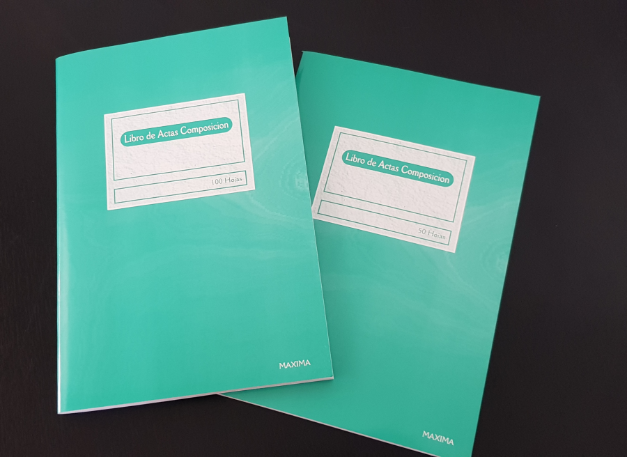 Libro de actas 50 hjs., interior papel hilado blanco, foliado simple. Tapa cartulina termolaminada. Línea Máxima.